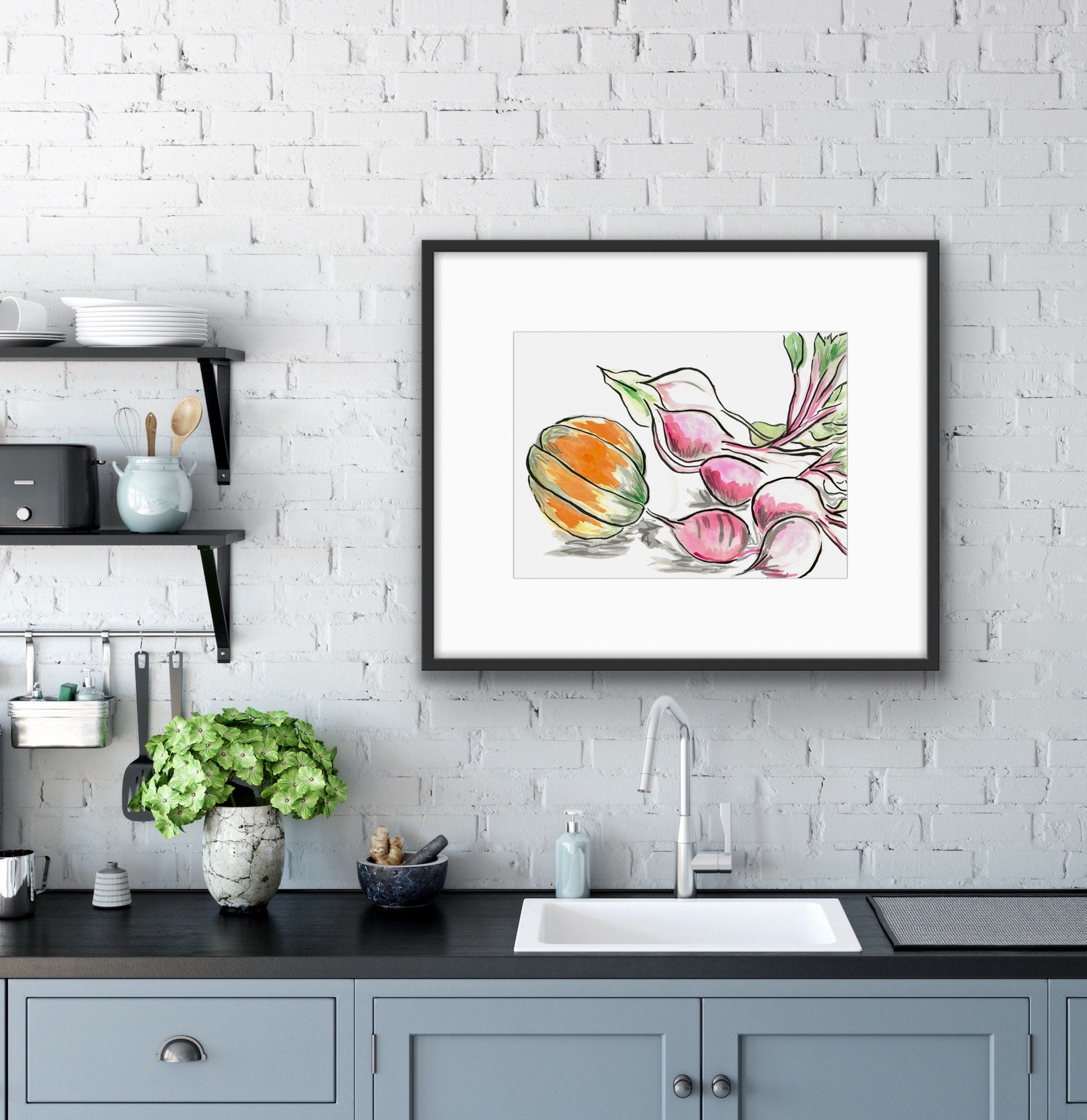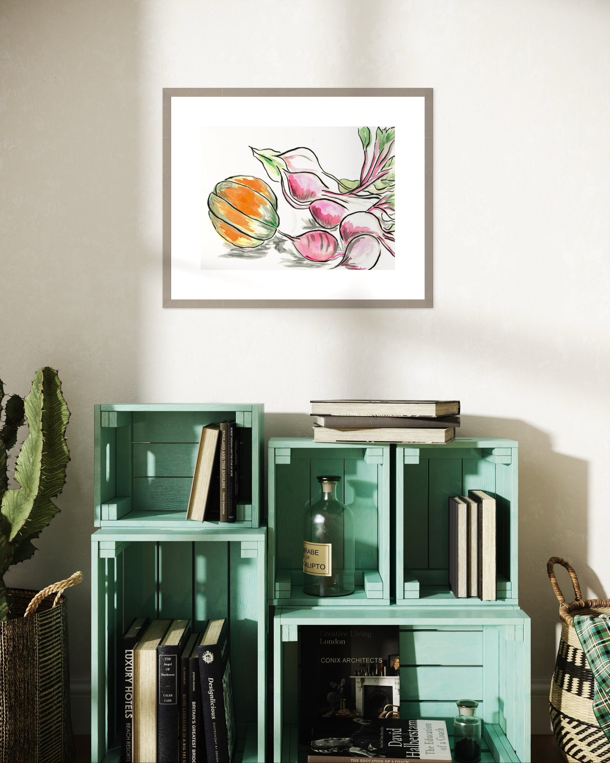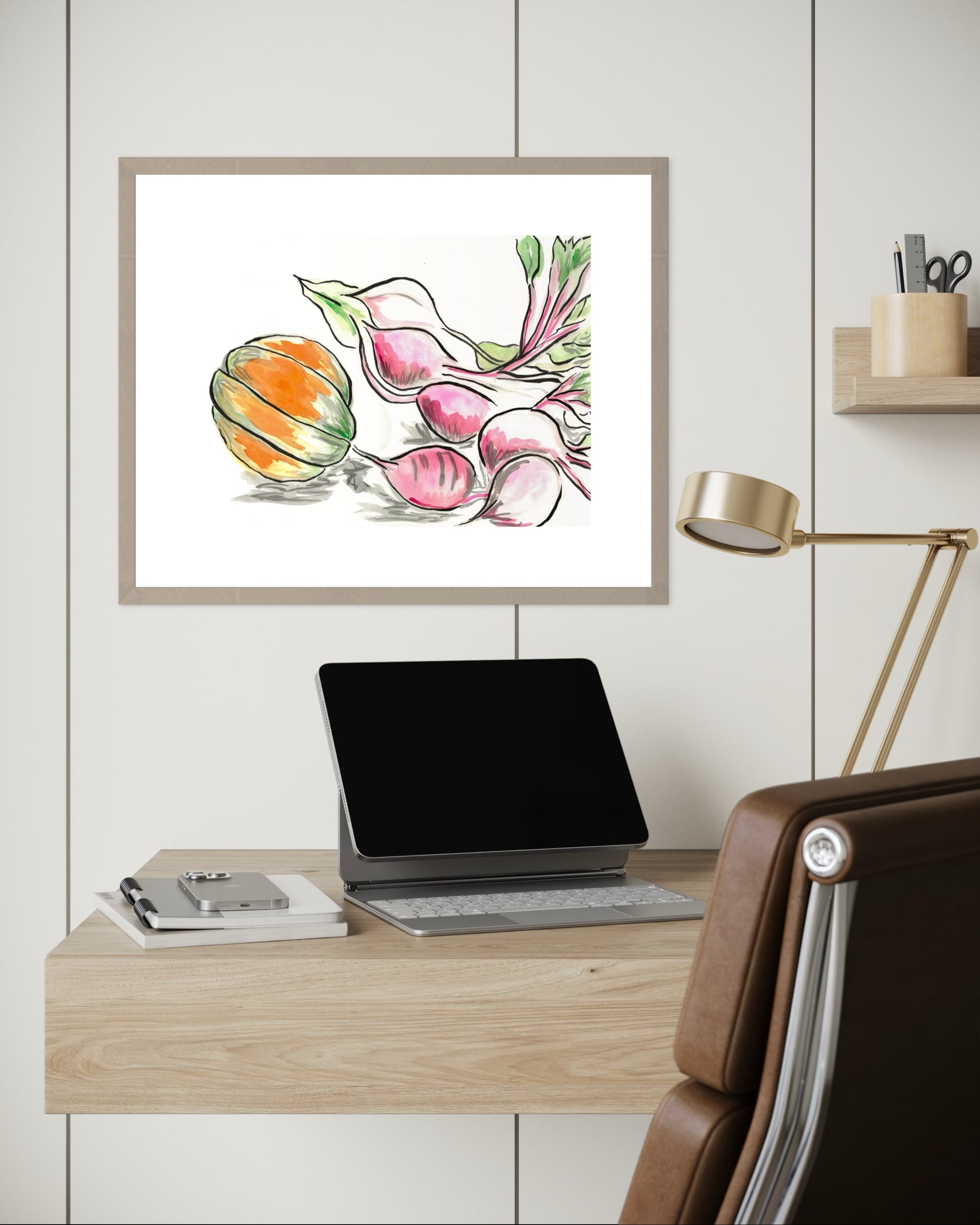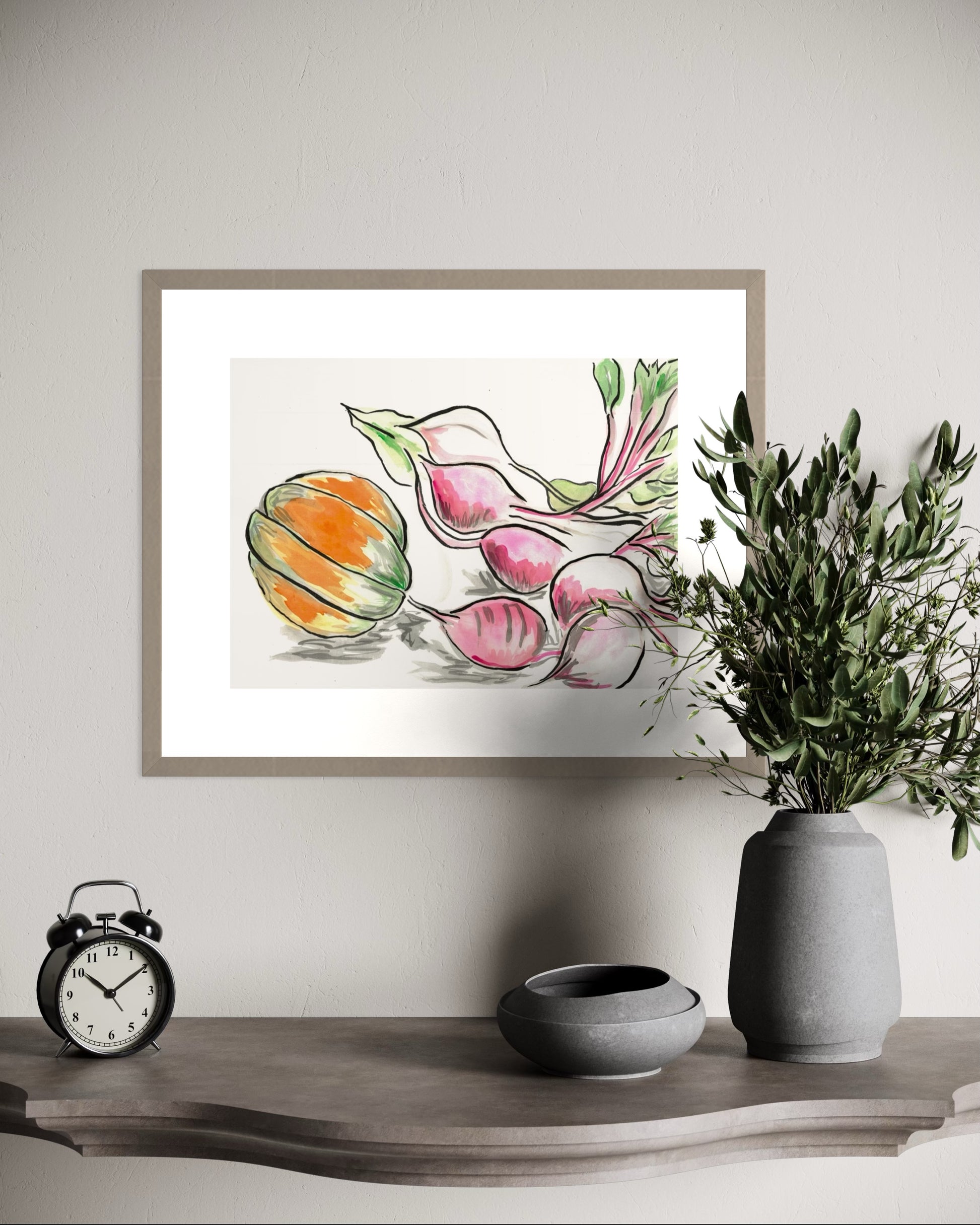 Beetroot and Pumpkin is a heartfelt celebration of the joy found in simple, everyday moments. Inspired by the experience of growing and harvesting our own butternut pumpkin, this artwork captures the warmth and beauty of homegrown produce. The delicate hues of the pumpkin and rich tones of the beets create a sense of coziness, bringing a peaceful, homely atmosphere to any space.